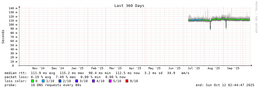 traceroute to 2620:4f:8000::1 (2620:4f:8000::1), 30 hops max, 80 byte packets - Generated at 2025-10-12 01:00:01