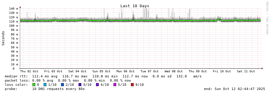 11 > 2a02:2f00:8708::cf (2a02:2f00:8708::cf) [AS8708] 95.344ms 95.309ms 95.318ms