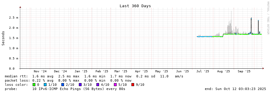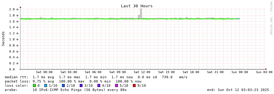 traceroute to 2620:119:53::53 (2620:119:53::53), 30 hops max, 80 byte packets - Generated at 2025-10-12 01:00:01