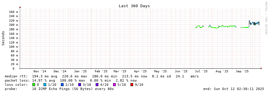 traceroute to 221.120.198.31 (221.120.198.31), 30 hops max, 60 byte packets - Generated at 2025-10-12 01:00:01
