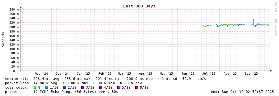 traceroute to 219.71.130.1 (219.71.130.1), 30 hops max, 60 byte packets - Generated at 2025-10-12 00:45:01