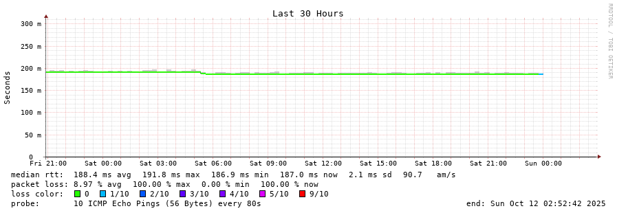 12 > 210.130.146.150 (210.130.146.150) [AS2497] 188.688ms 188.514ms 188.507ms