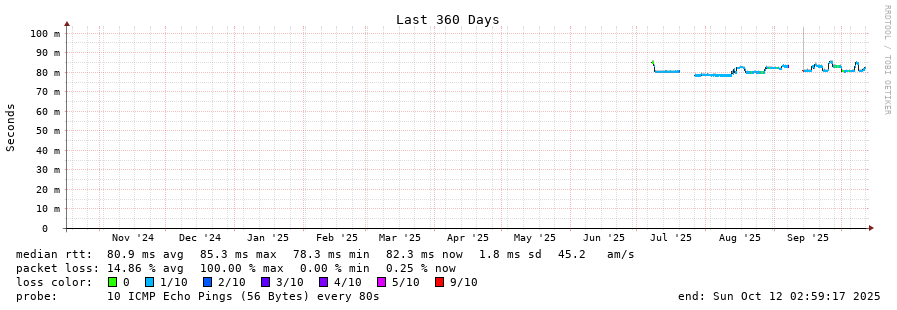 traceroute to 77.173.205.1 (77.173.205.1), 30 hops max, 60 byte packets - Generated at 2025-10-12 00:45:01