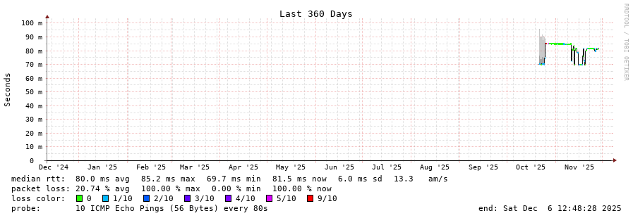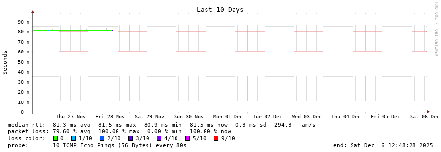 12 > losa4-agg-01--snvl2-agg-01--800g--2.cenic.net (137.164.11.20) [AS2152] 82.513ms 82.716ms 82.585ms
