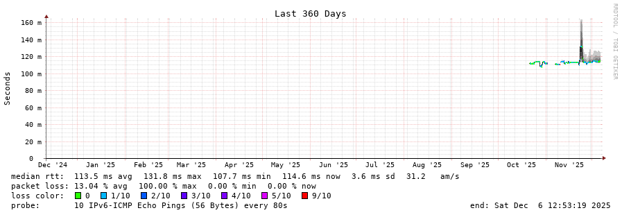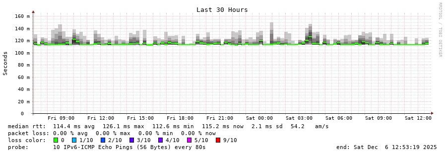 traceroute to 2a0c:9a40:8610:e3f::1 (2a0c:9a40:8610:e3f::1), 30 hops max, 80 byte packets - Generated at 2025-12-06 12:45:01