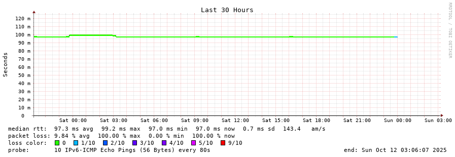 10 > 2a00:c560:c0c0:1a1a::249 (2a00:c560:c0c0:1a1a::249) [AS62416] 97.000ms 97.013ms 97.057ms