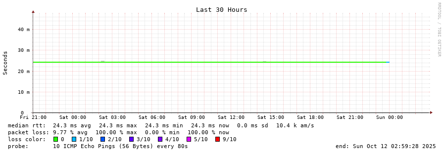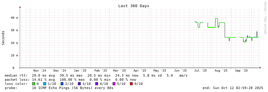 traceroute to 217.160.80.1 (217.160.80.1), 30 hops max, 60 byte packets - Generated at 2025-10-12 00:45:01
