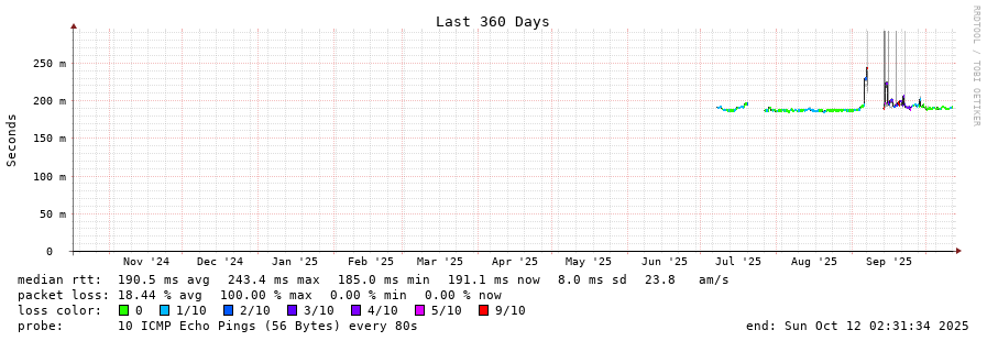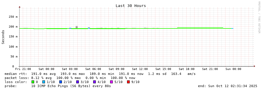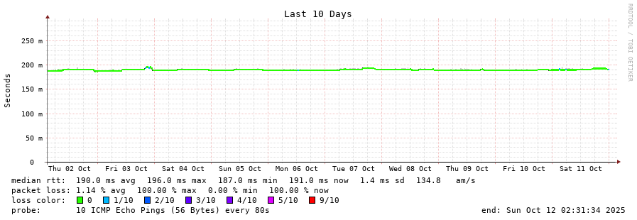 14 > 86.96.206.57 (86.96.206.57) [AS5384] 189.224ms 189.064ms 189.075ms