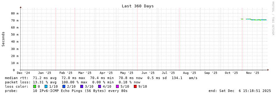 traceroute to 2001:41d0:302:1000::18:665e (2001:41d0:302:1000::18:665e), 30 hops max, 80 byte packets - Generated at 2025-12-06 15:00:01