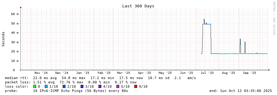 traceroute to 2604:2dc0:307::2:0:377 (2604:2dc0:307::2:0:377), 30 hops max, 80 byte packets - Generated at 2025-10-12 03:30:01