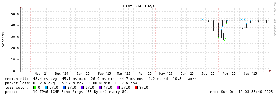 traceroute to 2604:2dc0:304::2:0:1ce (2604:2dc0:304::2:0:1ce), 30 hops max, 80 byte packets - Generated at 2025-10-12 03:30:01