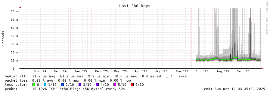 traceroute to 2604:2dc0:303::2:0:3d (2604:2dc0:303::2:0:3d), 30 hops max, 80 byte packets - Generated at 2025-10-12 03:30:01 3 > 2604:2dc0:303::2:0:3d (2604:2dc0:303::2:0:3d) [AS16276] 0.019ms 0.016ms 0.003ms