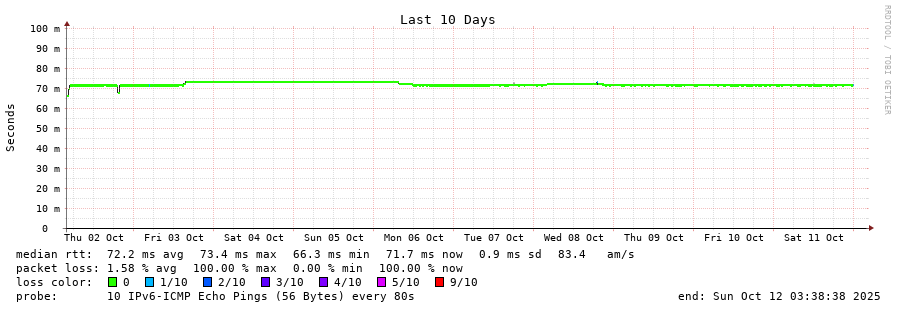 11 > 2604:2dc0:305::2:0:2b0 (2604:2dc0:305::2:0:2b0) [AS16276] 71.767ms 71.714ms 71.709ms