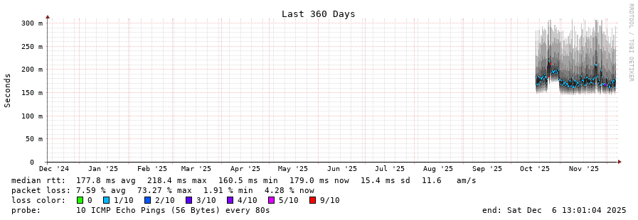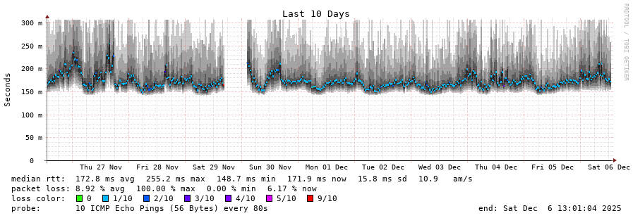 traceroute to 190.104.210.9 (190.104.210.9), 30 hops max, 60 byte packets - Generated at 2025-12-06 12:45:01