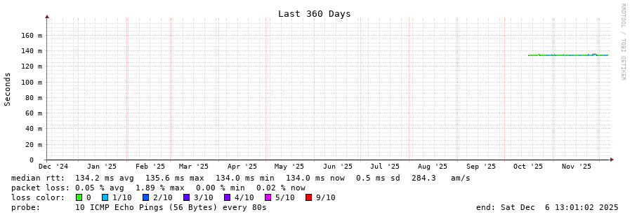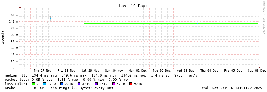 5 > 185.70.203.57 (185.70.203.57) [AS6762] 134.089ms 134.094ms 133.991ms