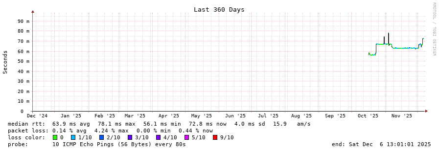 traceroute to 190.6.50.26 (190.6.50.26), 30 hops max, 60 byte packets - Generated at 2025-12-06 13:00:01