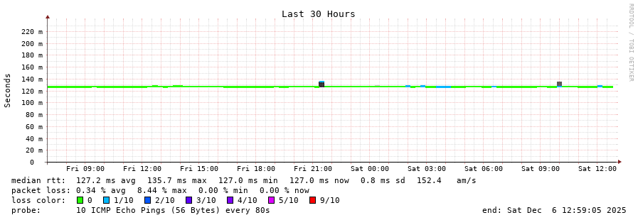 12 > 200.25.56.95 (200.25.56.95) [AS7195] 125.318ms 125.282ms 125.303ms