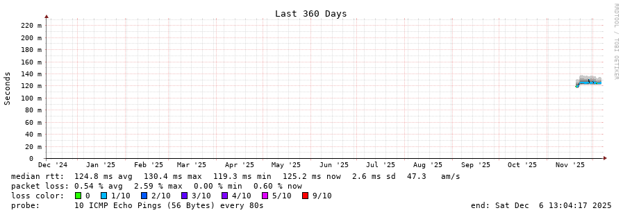 traceroute to 168.227.47.46 (168.227.47.46), 30 hops max, 60 byte packets - Generated at 2025-12-06 13:00:01