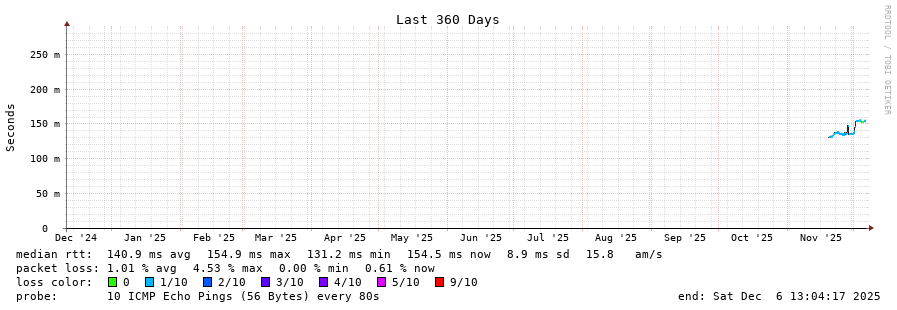 traceroute to 131.0.99.130 (131.0.99.130), 30 hops max, 60 byte packets - Generated at 2025-12-06 13:00:01