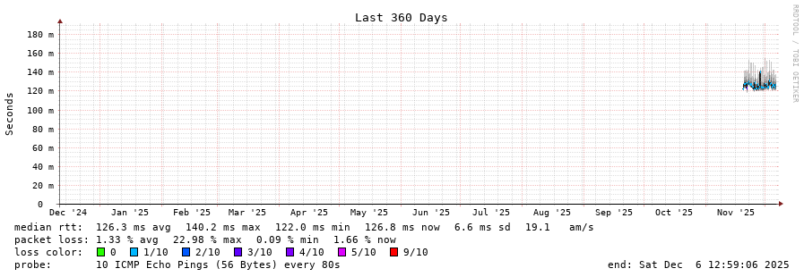 traceroute to 167.249.147.96 (167.249.147.96), 30 hops max, 60 byte packets - Generated at 2025-12-06 12:45:01