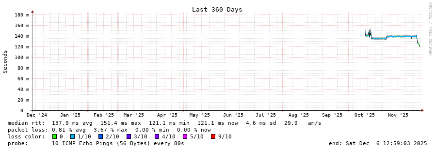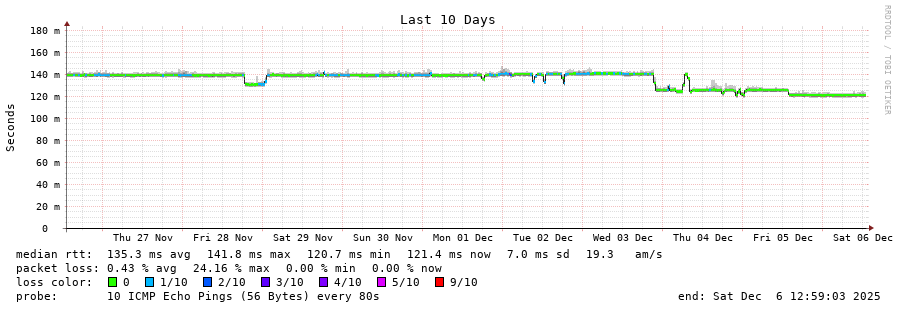 12 > 200.25.56.63 (200.25.56.63) [AS7195] 120.746ms 120.491ms 120.485ms