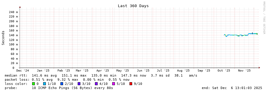 traceroute to 131.100.158.39 (131.100.158.39), 30 hops max, 60 byte packets - Generated at 2025-12-06 12:45:01