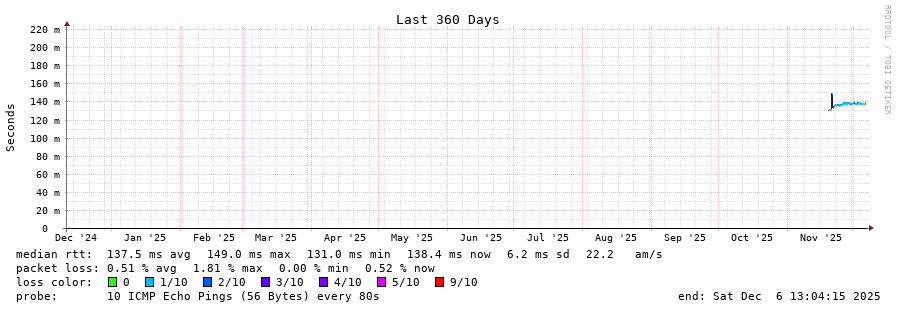 traceroute to 45.177.208.13 (45.177.208.13), 30 hops max, 60 byte packets - Generated at 2025-12-06 12:45:01