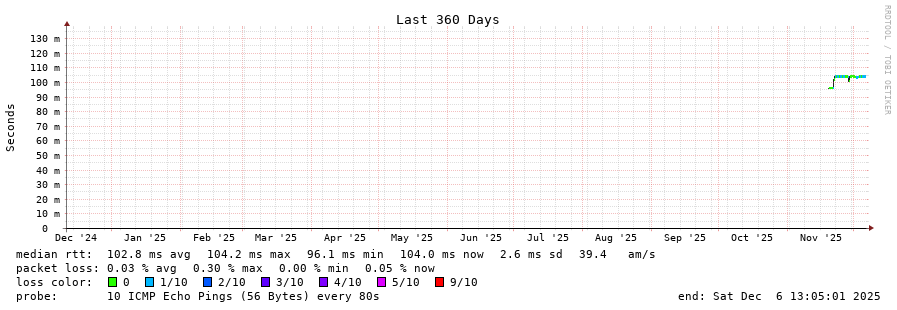 11 > 8.243.122.30 (8.243.122.30) [AS3356] 98.931ms 98.945ms 99.572ms