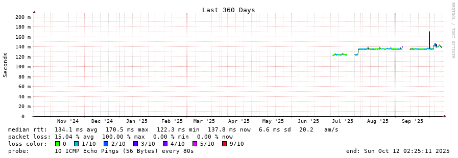 5 > 195.22.222.13 (195.22.222.13) [AS6762] 130.169ms 129.995ms 129.858ms