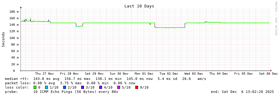 12 > ae0.753.monet-mi1.eqnx-sp4.huge-networks.com (166.0.158.96) [AS61596] 142.460ms 142.589ms 142.448ms