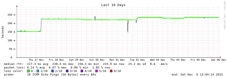 4 > 177.93.238.69 (177.93.238.69) [AS28663] 225.769ms 225.609ms 225.738ms
