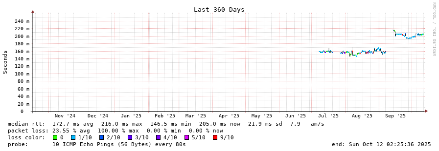 traceroute to 167.57.0.4 (167.57.0.4), 30 hops max, 60 byte packets - Generated at 2025-10-12 01:00:01