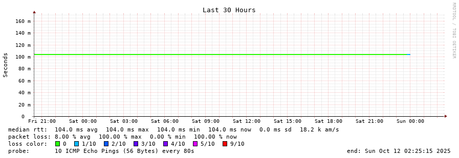8 > 200.87.100.1 (200.87.100.1) [AS6568] 104.288ms 104.320ms 104.276ms