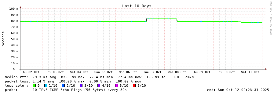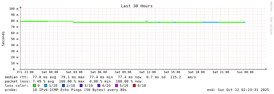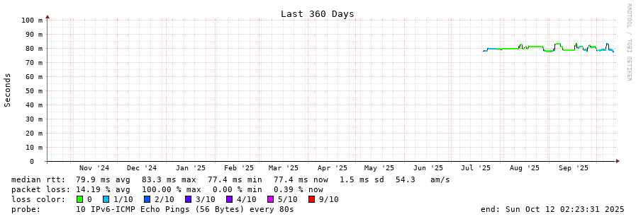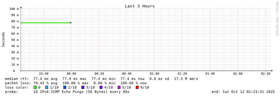 traceroute to 2001:49f0:d0b0:6::2 (2001:49f0:d0b0:6::2), 30 hops max, 80 byte packets - Generated at 2025-10-12 00:45:01