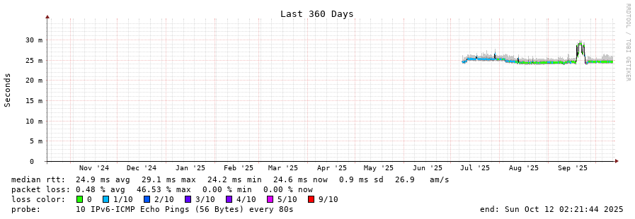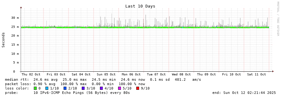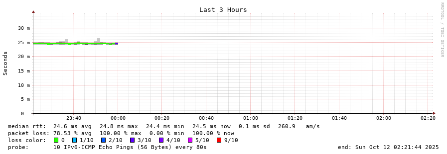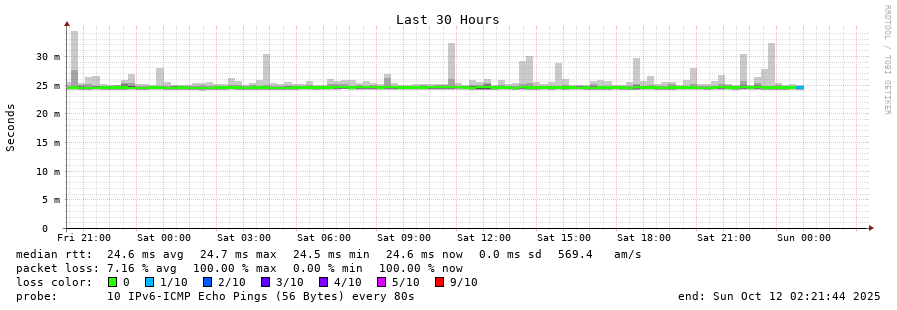 traceroute to 2602:feda:b8e:10::1 (2602:feda:b8e:10::1), 30 hops max, 80 byte packets - Generated at 2025-10-12 01:00:01