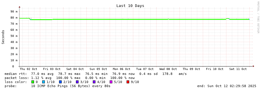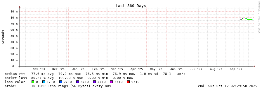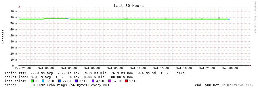 11 > 163.5.169.124 (163.5.169.124) [AS399486] 76.851ms 76.983ms 76.904ms