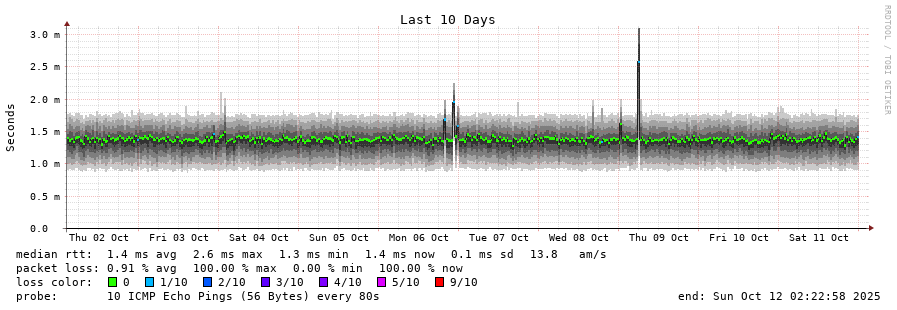 traceroute to 17.253.144.10 (17.253.144.10), 30 hops max, 60 byte packets - Generated at 2025-10-12 01:00:01 3 > ewr1-gw2-ae402 (198.32.160.225) [AS13538] 0.987ms 1.187ms 1.103ms 4 > apple.com (17.253.144.10) [AS714] 0.926ms 1.501ms 0.999ms
