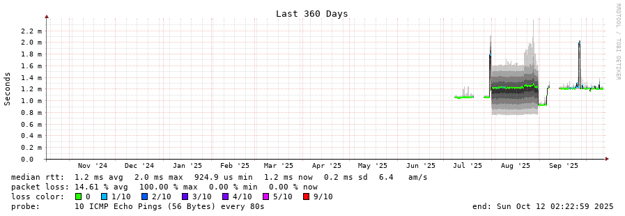 traceroute to 17.253.144.11 (17.253.144.11), 30 hops max, 60 byte packets - Generated at 2025-10-12 01:00:01 3 > nyc3-gw1-ae402 (198.32.160.226) [AS13538] 0.997ms 0.943ms 0.928ms 4 > pixelmator.com (17.253.144.11) [AS714] 1.218ms 1.208ms 1.203ms