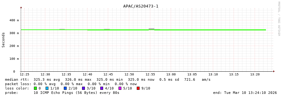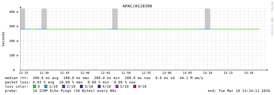10. Median RTT 0.305 seconds